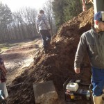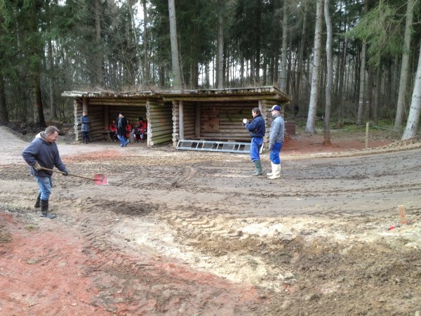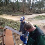 Michi Adams, Ingo Ludwig und Hans-Jürgen verschweissten das Ganze am Metallkunstrukt. Sitzt!!! 😉 Maik Puschert und Dirk Bülow ( welcher wieder aus Itzehoer Richtung nur zum Helfen angereist war – DICKES DANKE DAFÜR! ) und dann auch noch Ingo Ludwig bauten mit den BMX’ern die letzte und die erste Kurve auf! Diese legte Ralf Lilienthal mit dem geliehenen Radlader optimal vor. Er bewegte gute 140 Kubikmeter in kürzester Zeit. Auch sorgte er für einen große Brötchenplatte, welche uns mit anderen mitgebrachten Utensilien nährten ! Nun ist der Rohbau der BMX-Bahn abgeschlossen! Ein großer Abschnitt ist beendet, welcher durch ehrenamtliche Arbeit in die Realität umgesetzt wurde.